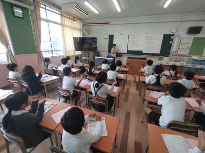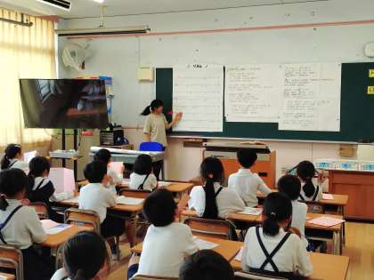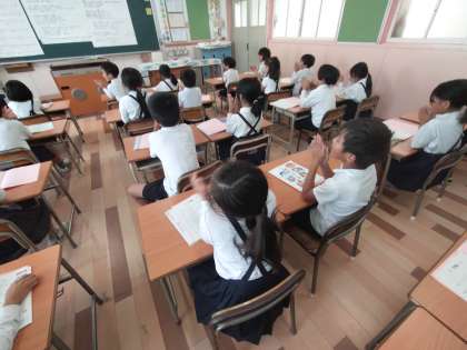 2年生が音楽をしていました。歌を歌ったり手拍子を打ったりしていました。