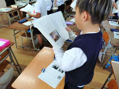 2年生が国語を学習していました。ビーバーの大工事の単元です。