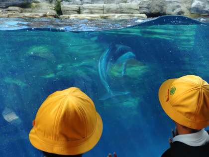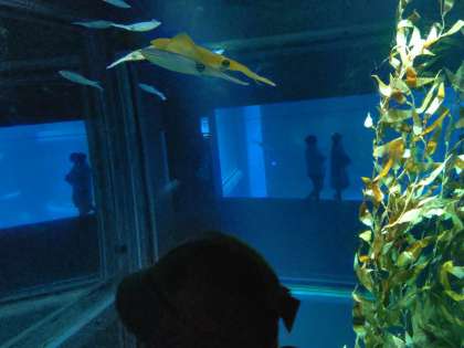 海遊館の中を回っています。たくさんの海の生き物に興奮気味です。