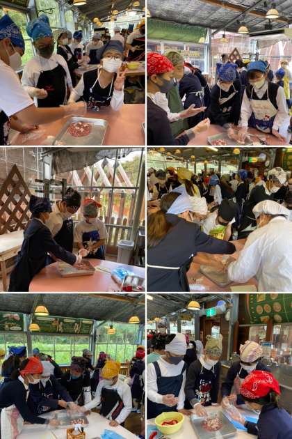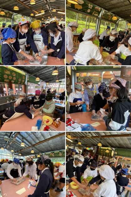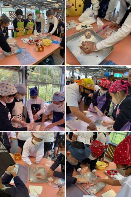 お肉を手でこねています。慣れない触感に恐る恐るでした。