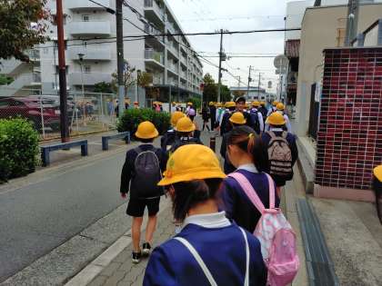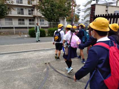 6年生が劇を見に行きます。途中長居公園でお弁当を食べます。
