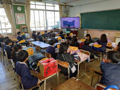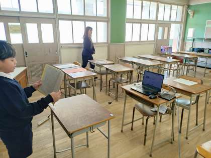 校歌を歌い、3,4年生の代表児童が作文を披露しました。