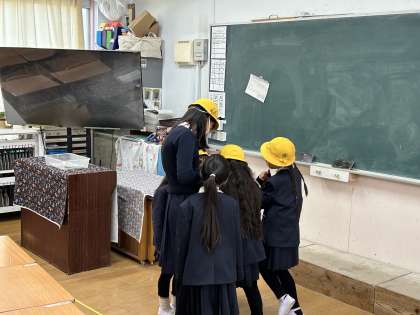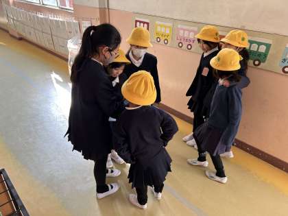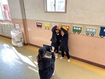 児童会で黄色帽子をかぶった写真を募集し、みんなでかぶろうという取り組みを行っています。学校の掲示板に児童会のフォトスナップを掲示し、児童会担当の児童が写真を撮りに行っています。