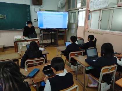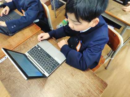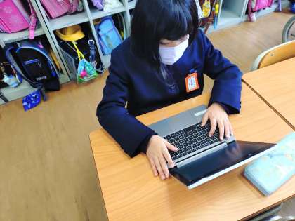 2年生が児童アンケートを答えていました。タブレットを使って答えています。