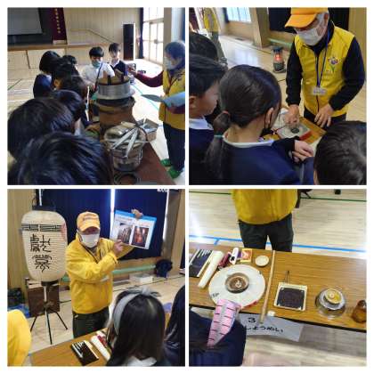 3年生が講堂で学習していました。うつりかわる道具と暮らしの学習をしていました。2、3時間目学習します。