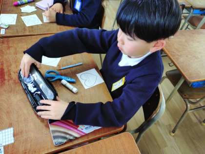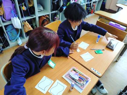 5時間目はスマイル活動です。1から5年生までは各教室で卒業する6年生にメッセージカードを書いていました。