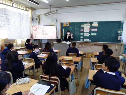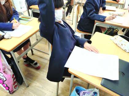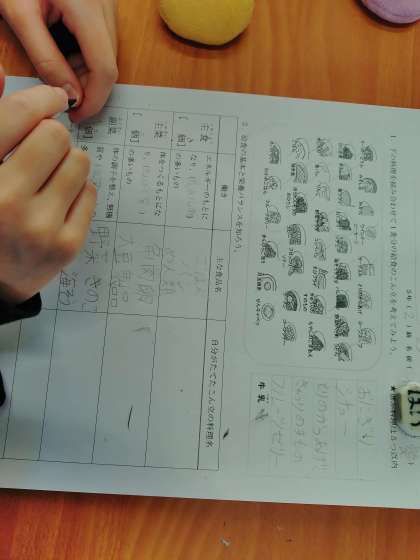 5年生が栄養指導を受けていました。バランスの良い食事を考えていました。