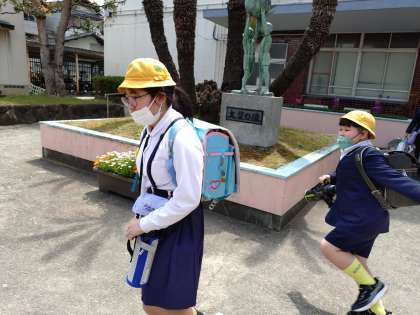 下校の時間になりました。明日から全学年で給食が始まります。2年生以上は明日は5時間授業で、2時半頃の下校です。1年生は給食を食べて1時頃の下校となります。