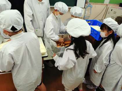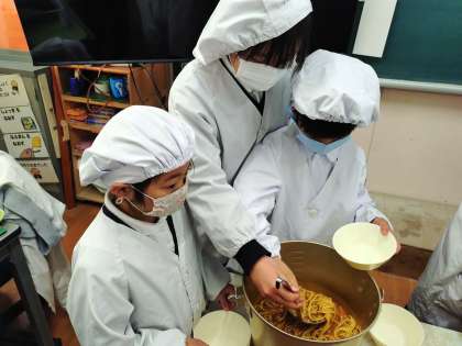1年生は少し早めに準備をします。今日も6年生がお手伝いしてくれています。