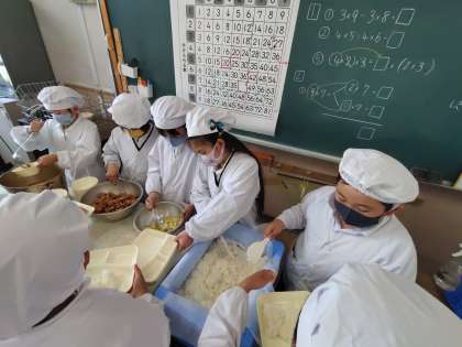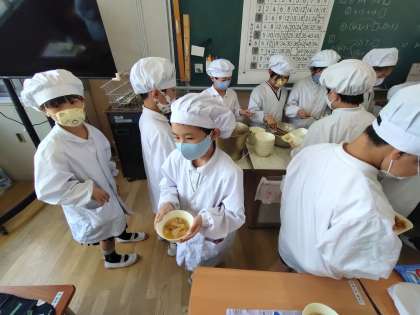金曜日の給食です。今日から1年生も5時間目終了後下校ですね。