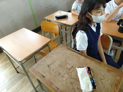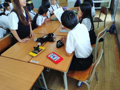1年間この縦割りグループで児童集会を行います。自己紹介したり看板を作ったりして交流していました。