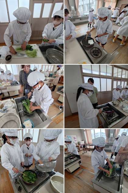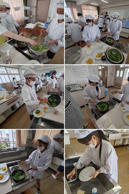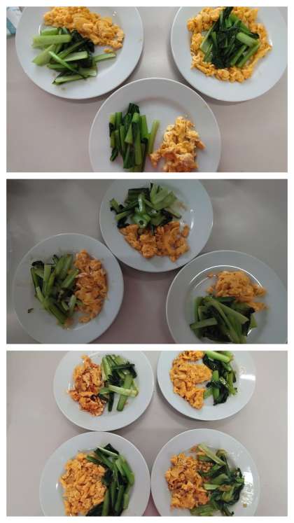スクランブルエッグとコマツナの油炒め、美味しいとうれしそうにたくさんの子が言いに来てくれました。