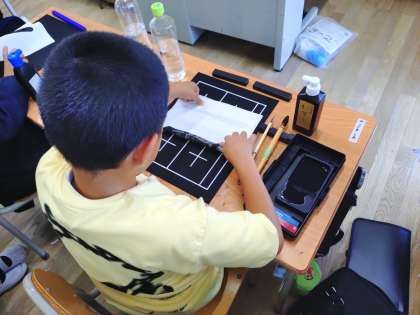 姿勢や持ち方も聞き、片付けに入っています。