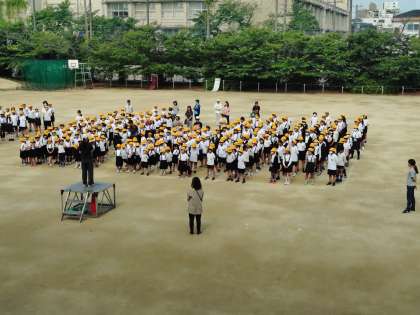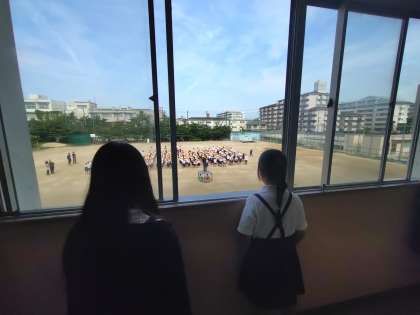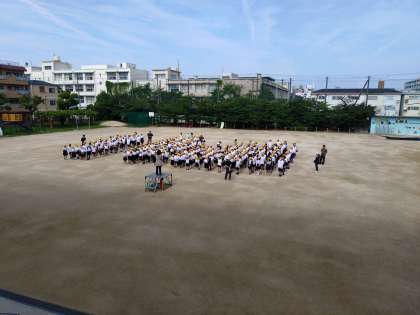 今日は運動場で朝会を行いました。6月に入りましたが今日は気候も良くすごしやすい朝となりました。放送委員が準備、音楽を担当してくれます。