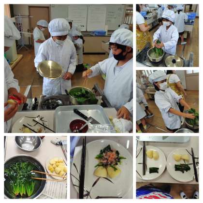 ふかしじゃかいもとほうれん草のおひたしです。