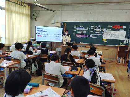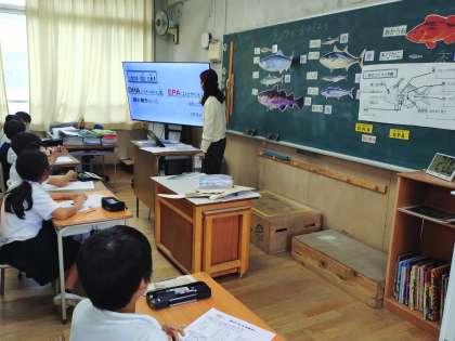 4年生隣のクラスでも栄養指導を受けていました。魚パワーについて学習していました。