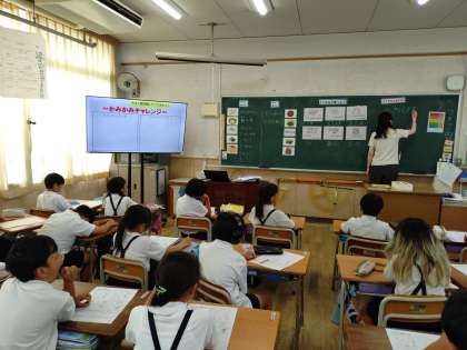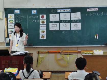 3年生が栄養指導を受けていました。よくかんで食べようということで学習していました。