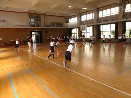 今日は、夢授業でプロバスケットボールチーム「大阪エヴェッサ」の人が来てくれて、5年生にバスケットボールを教えてくれました。