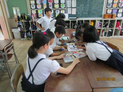 6年生が班の中心となってみんなで看板を作ったり、遊んだりしました。