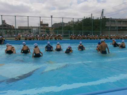 6月23日、1年生のプール開きを6年生がお手伝いしました。