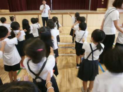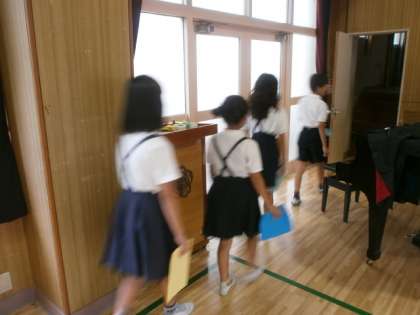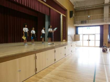 給食後1学期終業式がありました。まず、5,6年各学級を代表して1学期を振り返って作文を発表しました。