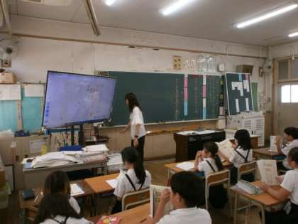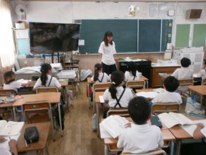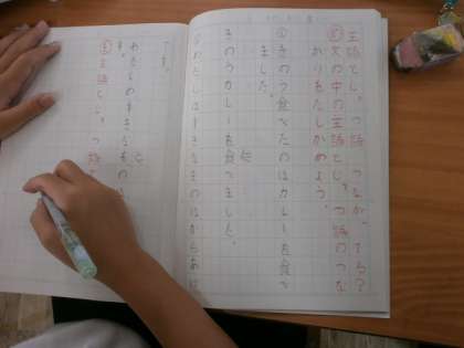 3年生が国語をしていました。教育実習の先生やほかの教員も何人か見に来ていました。
