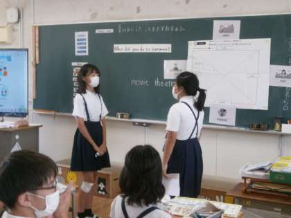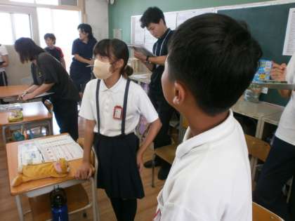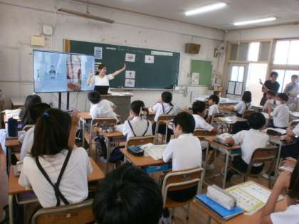6年生が外国語をしていました。教育委員会から指導者の方がきて、教員もたくさん参観に来ていました。