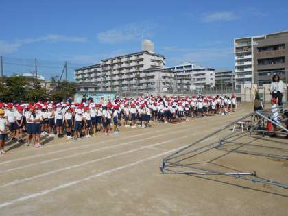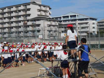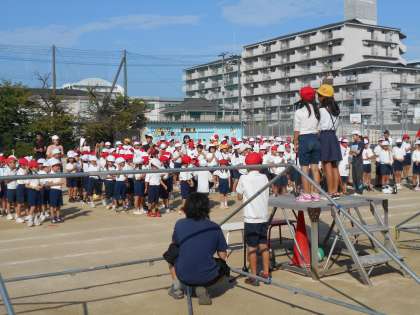 10月14日(火)1時間目に運動場で、運動会の全体練習をしました。
