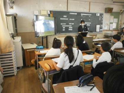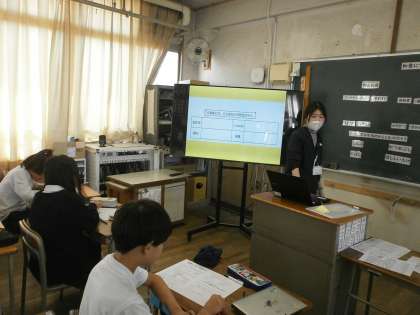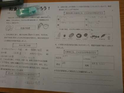 5年生が栄養指導を受けていました。苅田小学校から栄養指導の先生が来られて指導していただきました。和食について知ろうという学習でした。