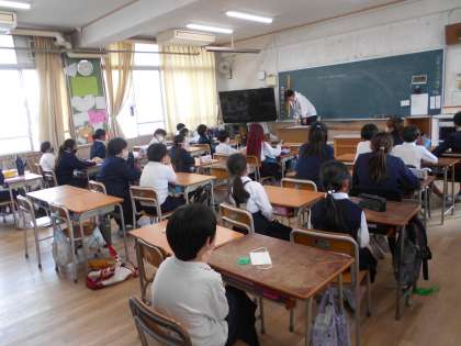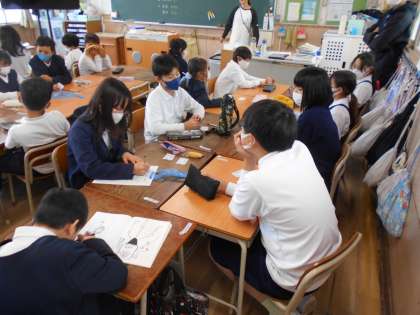 子ども祭りでは、1〜6年生の縦割り班で、それぞれの学級が用意した遊びを楽しみます。