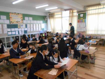 6年生が1年生に英語の本を読み聞かせてくれました。