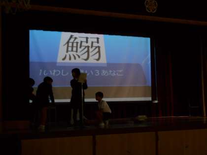 今日はプロジェクターを使っての、魚へんの漢字のクイズでした。