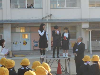 教頭先生から、転入生の紹介がありました。3・5・6年生です。