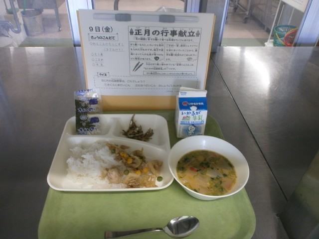 れんこんのちらし寿司、ぞうに、ごまめでした。