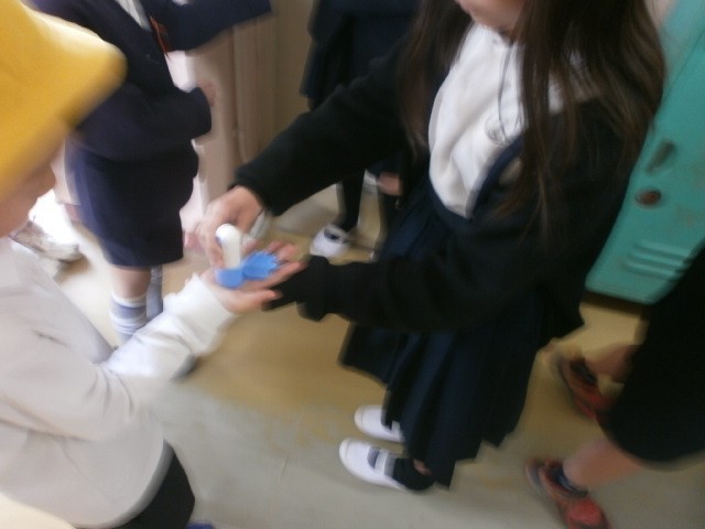 手洗いがんばり週間では15分休みに手洗いをすると保健委員会がスタンプを押してくれます。火曜は2年生でした。水は冷たいですがみんなしっかりと洗っていました。