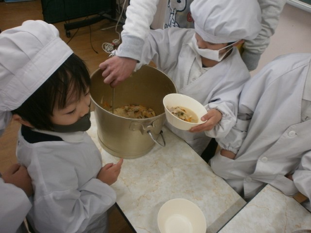 ご飯でした。かす汁でした、今年はサケではなく豚肉が入っていました。