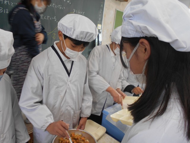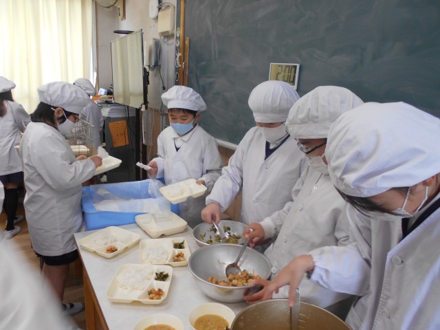 ご飯です。今日は給食コンクール優秀献立で市内の小学校が考えたメニューでした。