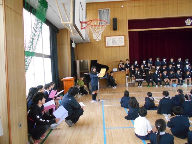 1年生から順に呼びかけや合唱・合奏があり、6年生からは合奏の発表がありました。
