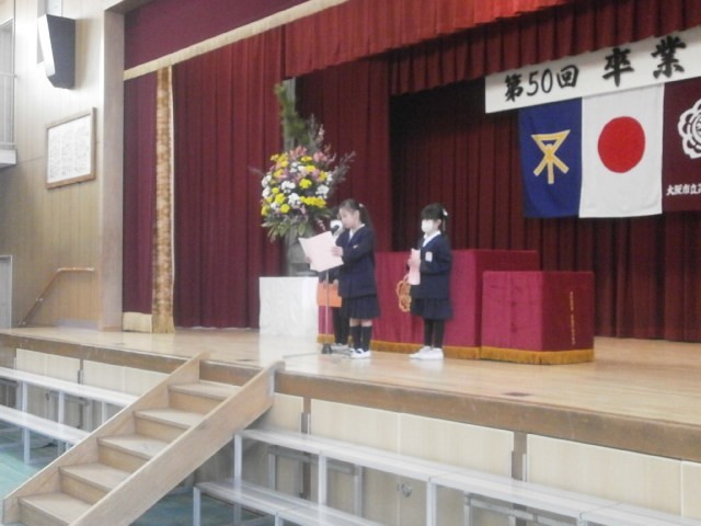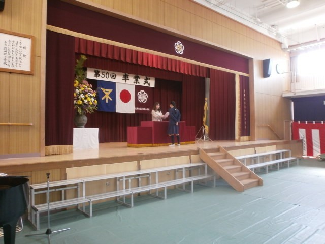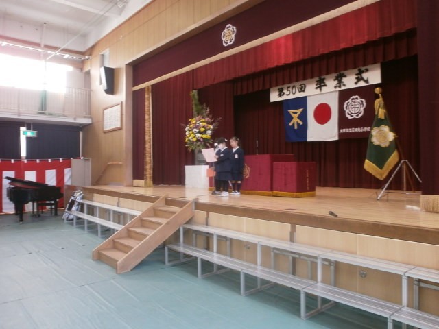 3時間目に講堂で修了式を行いました。