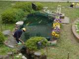 4年生が中庭で理科をしていました。タブレットを使って、色々と撮影していました。
