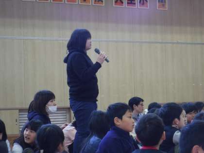 全校道徳は、1つのテーマ(今、子どもたちにとって必要なこと)を小グループで伝え合い全体で共有します。子どもだけでなく大人も一緒に考え、みんなに伝えます。