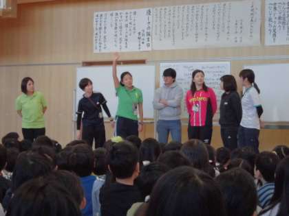 「赤」というテーマで、グループの中で困っている人に「赤で好きなものは?」「友だちと同じ意見でもいいよ。」と声をかけ、「つなげる よりそう ふくらませる」はどのようなことかを実演しました。