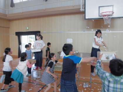 子どもたちは、前半・後半に分かれて店番をし、店番に当たっていない時には、ペア学年と一緒にお店を回ります。