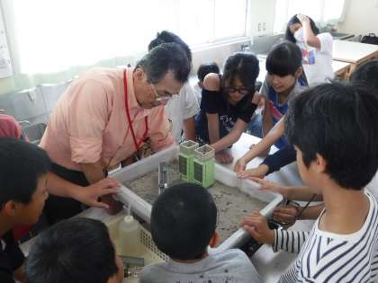 普段の学習では知れないような大学生が学ぶ内容を教わり、子どもたちは真剣に話を聞いていました。