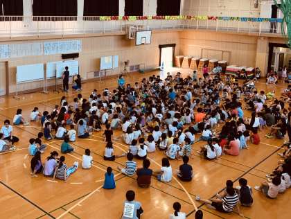 校長先生からは、次の目標である秋の遠足や修学旅行など校外学習に向けての話がありました。電車に乗る時の「0の声」や、学校外に出た時に注意することを全員で確認し合いました。
