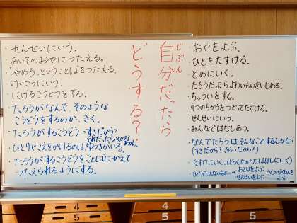 この話をうけて、今日の全校道徳のテーマは「自分だったら、どうする?」です。