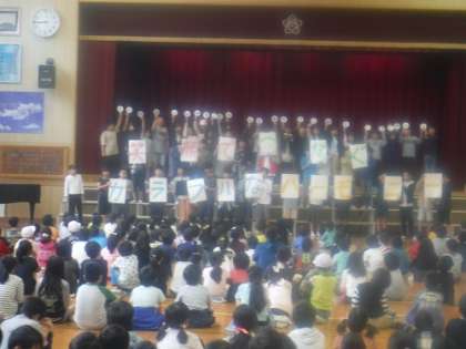今日は全校みんなで「平和」について考えます。
