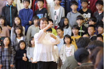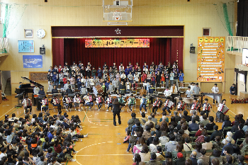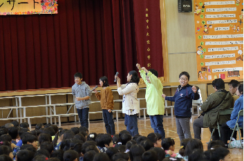 最後には子どもたち、教職員、会場に集まった全員が声を合わせて楽しみました。