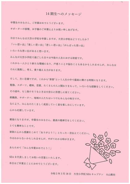 SEAキャプテンから卒業するリーダーへのメッセージです。