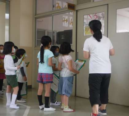 子どもたちは登校してくると、手洗いうがいをしてから教室に入ります。